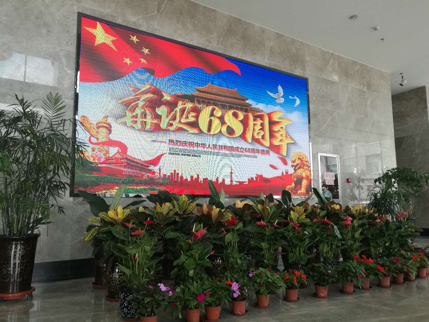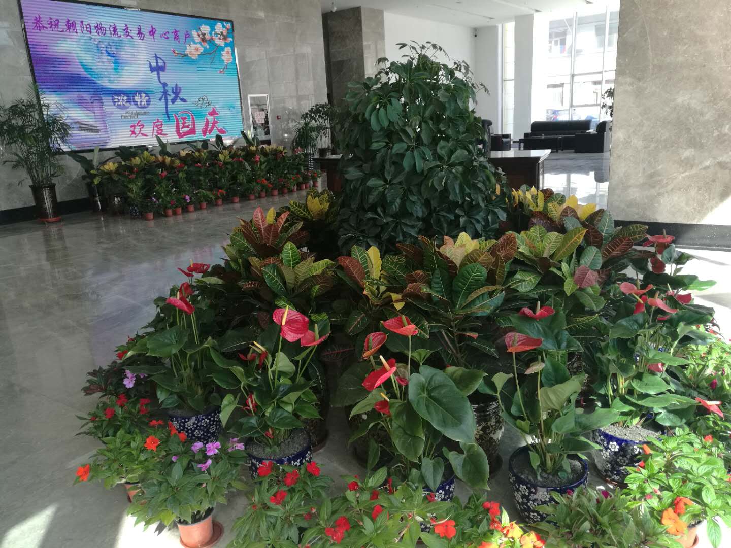 (朝物開投 訊 戴韻禮/文攝)為慶祝建國68周年,朝陽物流開發投資有限公司開展"喜迎國慶,歡度中秋"的準備工作。我公司在物產大廈門前紛紛懸掛起國旗和大紅燈籠,營造喜慶祥和的節日氣氛。在樓內大廳擺放鮮花,迎接國慶節的到來。把黨的關心和關懷傳達到每一名員工,讓全體員工都能感受到公司"大家庭"的溫暖。也為喜迎黨的十九大勝利召開做好前期宣傳工作。