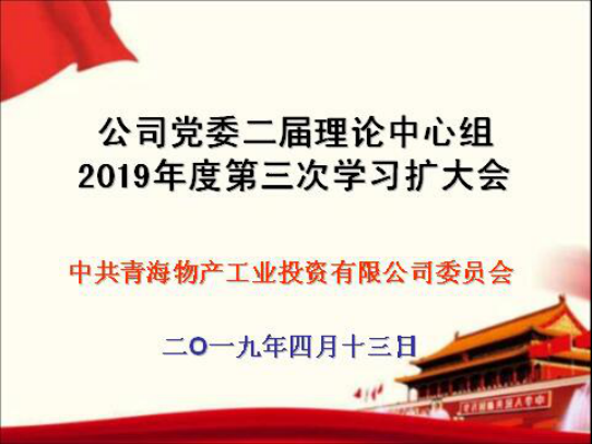 (工投公司 訊 陳倫/文 潘莉/攝)2019年4月13日上午,青海物產工業投資有限公司黨委召開2019年度第三次二屆黨委理論中心組學習擴大會。公司黨委書記、董事長、總經理張允忠同志主持會議,公司黨政班子成員、中心組學習秘書、公司全體黨員、助理以上中層管理人員、職能部室全體職工以及入黨積極分子共計50余人參加會議。