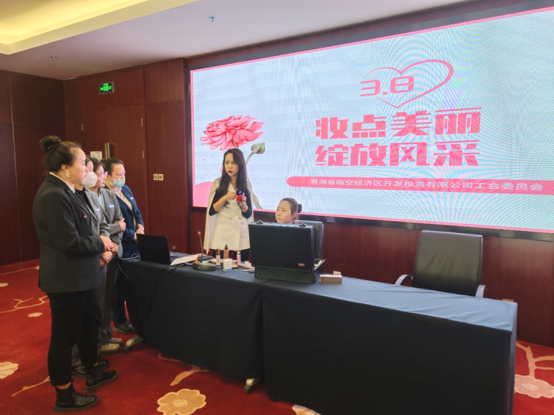 妝點美麗人生,綻放巾幗風采。美麗的妝容,能進一步展示女性的美麗與魅力,提升女性的自信心。美妝現場,培訓老師詳細講述各個步驟具體的做法和順序,以及顏色的選取和搭配,向大家展示妝前妝后的不同,耐心地回答職工們在化妝過程中遇到的一些問題?,F場氣氛熱烈,深受在場女職工喜愛。